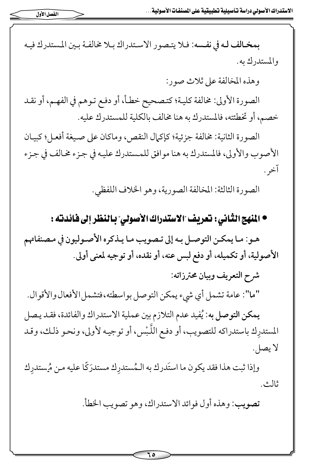 * المنهج الثاني: تعريف "الاستدراك الأصولي" بالنظر إلى فائدته: