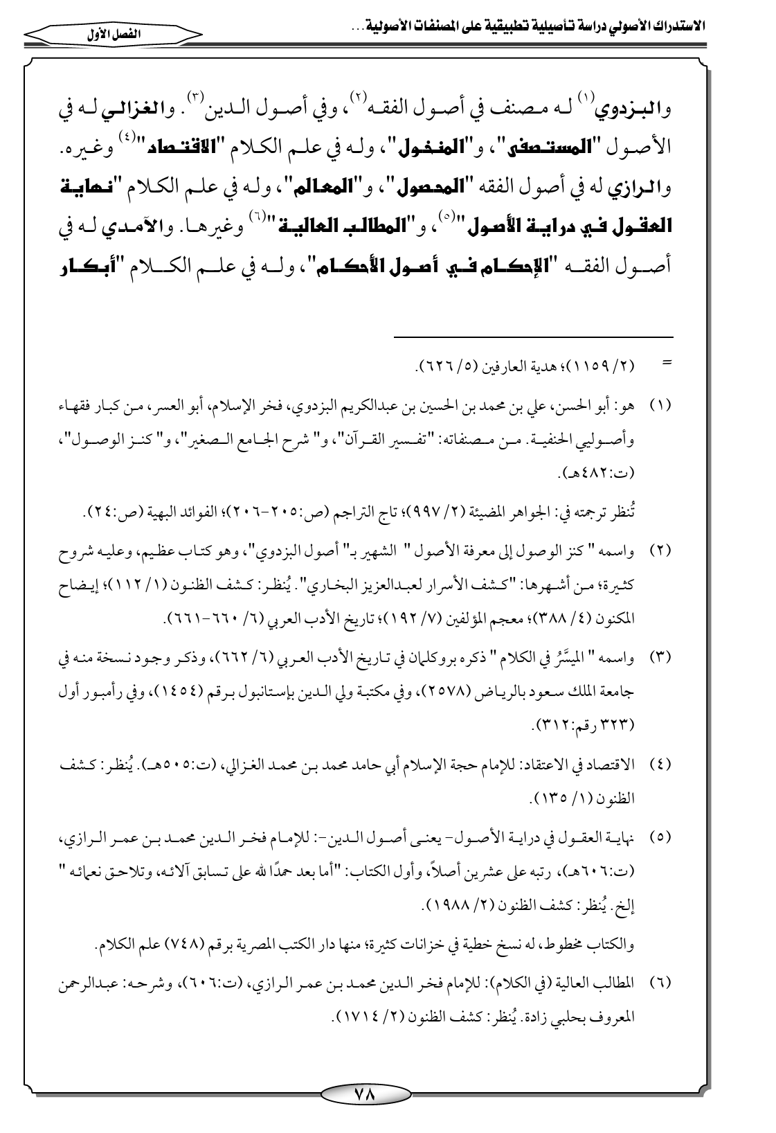 (٢) واسمه " كنز الوصول إلى معرفة الأصول " الشهير بـ" أصول البزدوي"، وهو كتاب عظيم، وعليه شروح كثيرة؛ من أشهرها: "كشف الأسرار لعبدالعزيز البخاري". يُنظر: كشف الظنون (١/ ١١٢)؛ إيضاح المكنون (٤/ ٣٨٨)؛ معجم المؤلفين (٧/ ١٩٢)؛ تاريخ الأدب العربي (٦/ ٦٦٠ - ٦٦١).