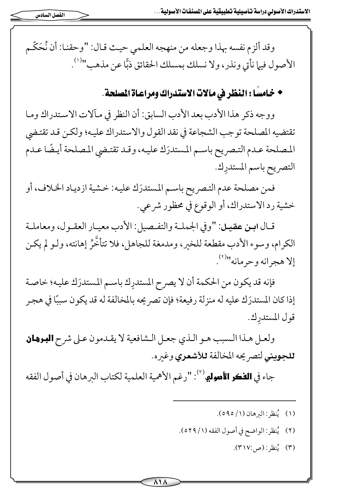 جاء في الفكر الأصولي (٣): "رغم الأهمية العلمية لكتاب البرهان في أصول الفقه