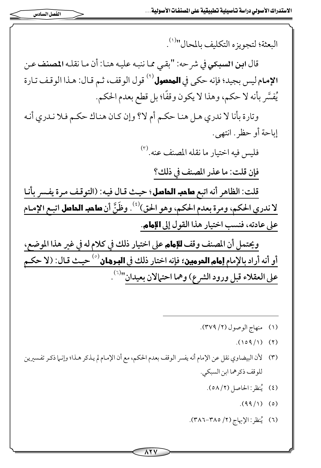 (٦) يُنظر: الإبهاج (٢/ ٣٨٥ - ٣٨٦).