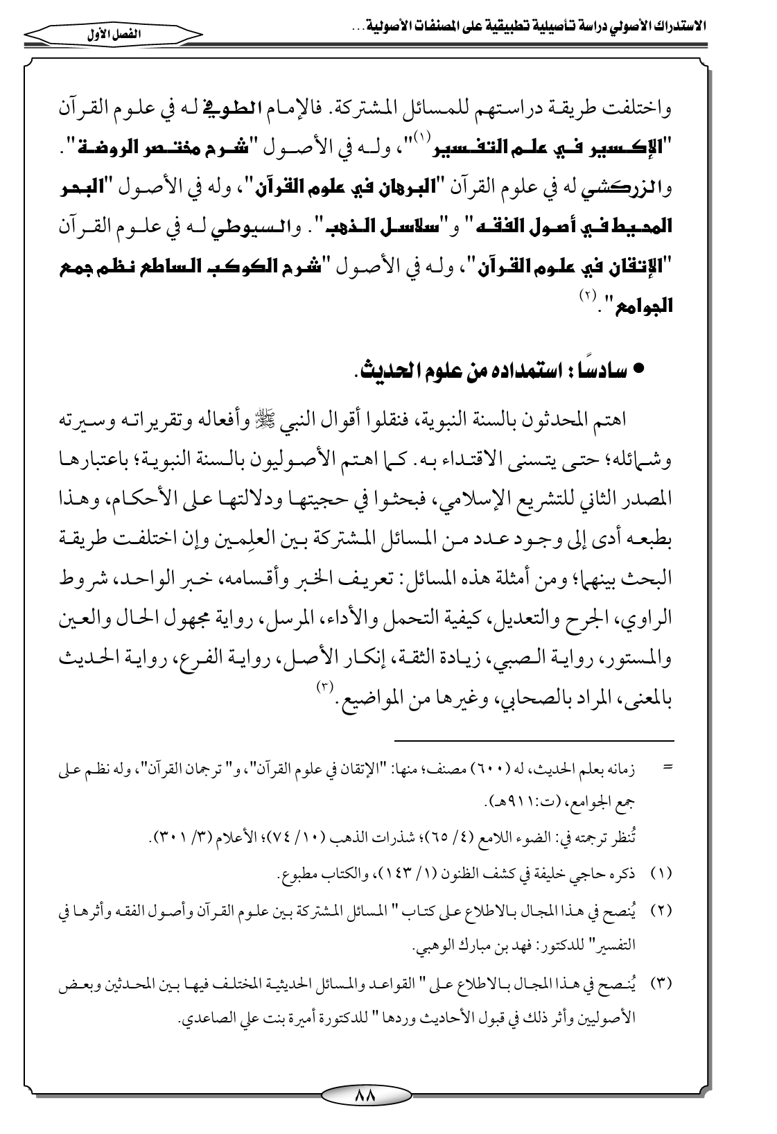 (٢) يُنصح في هذا المجال بالاطلاع على كتاب " المسائل المشتركة بين علوم القرآن وأصول الفقه وأثرها في التفسير" للدكتور: فهد بن مبارك الوهبي.