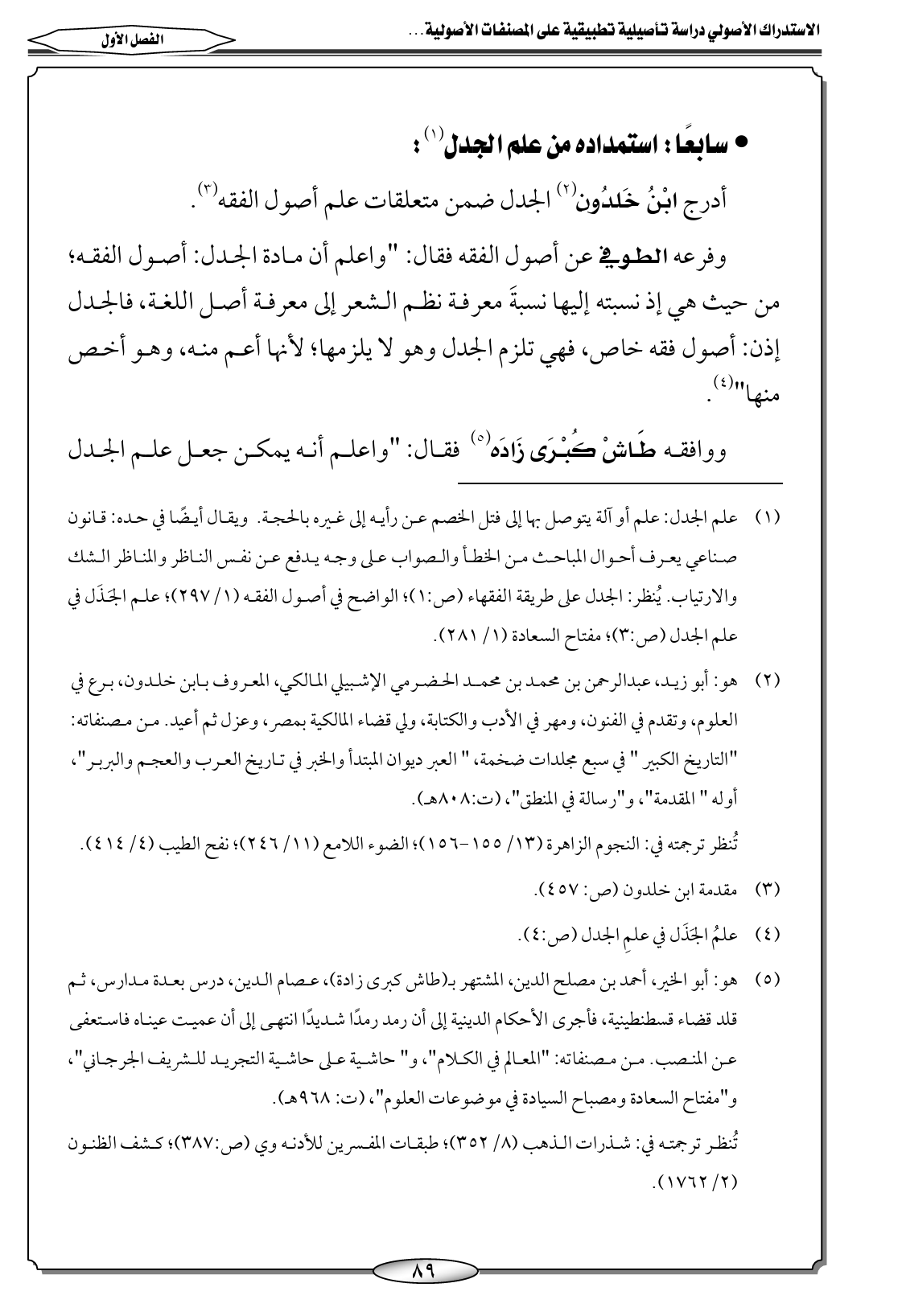 أدرج ابْنُ خَلدُون (٢) الجدل ضمن متعلقات علم أصول الفقه (٣).