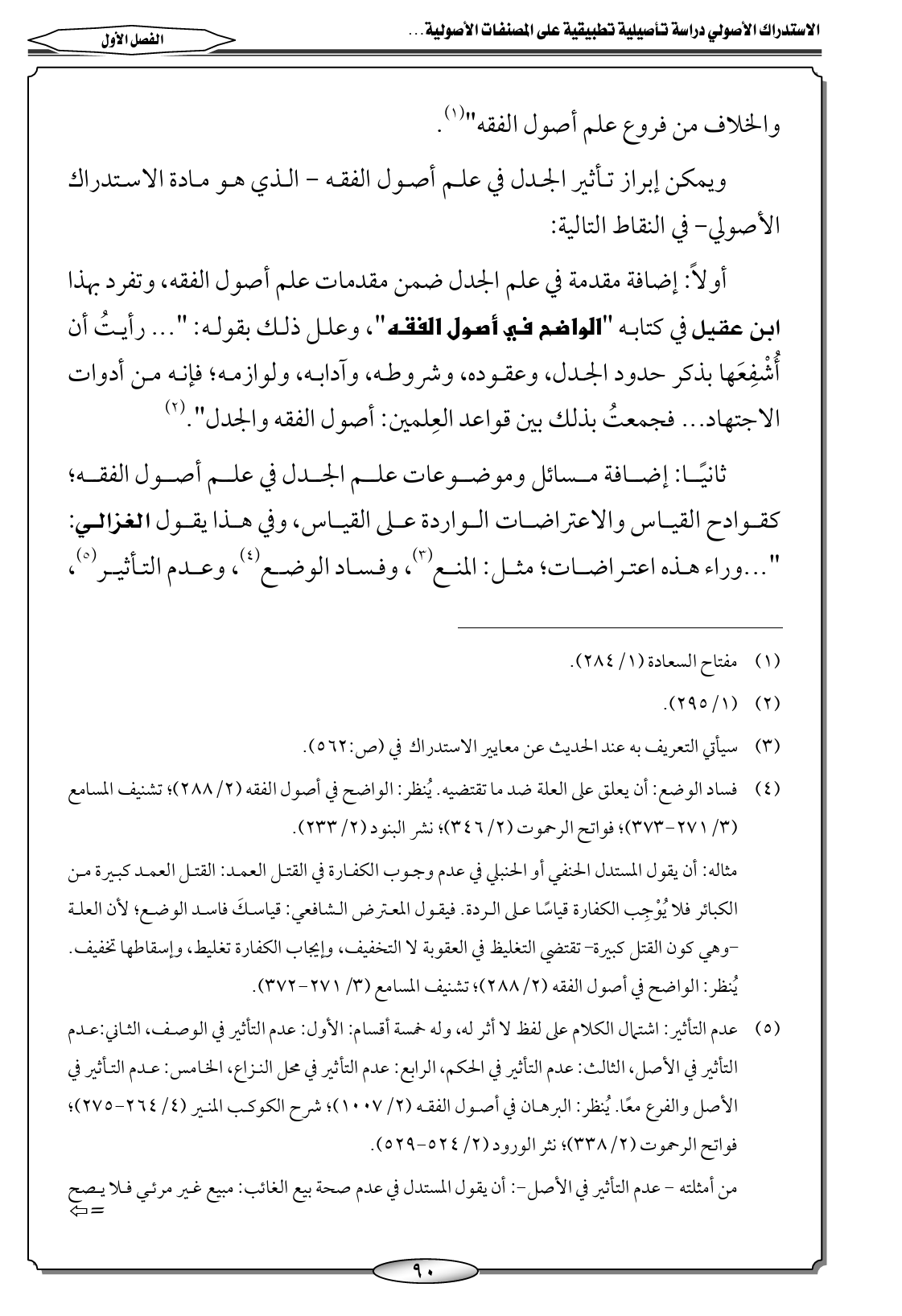 ويمكن إبراز تأثير الجدل في علم أصول الفقه - الذي هو مادة الاستدراك الأصولي- في النقاط التالية: