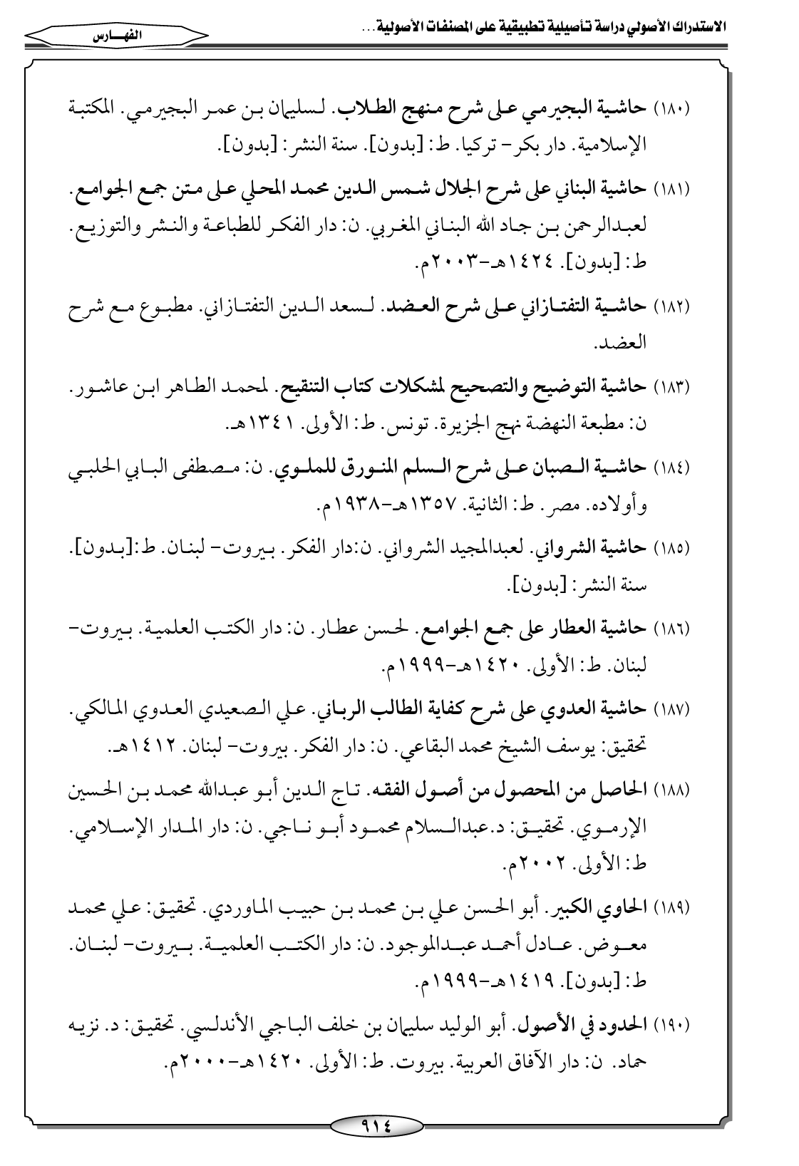 (١٩٠) الحدود في الأصول. أبو الوليد سليمان بن خلف الباجي الأندلسي. تحقيق: د. نزيه حماد. ن: دار الآفاق العربية. بيروت. ط: الأولى. ١٤٢٠ هـ-٢٠٠٠ م.