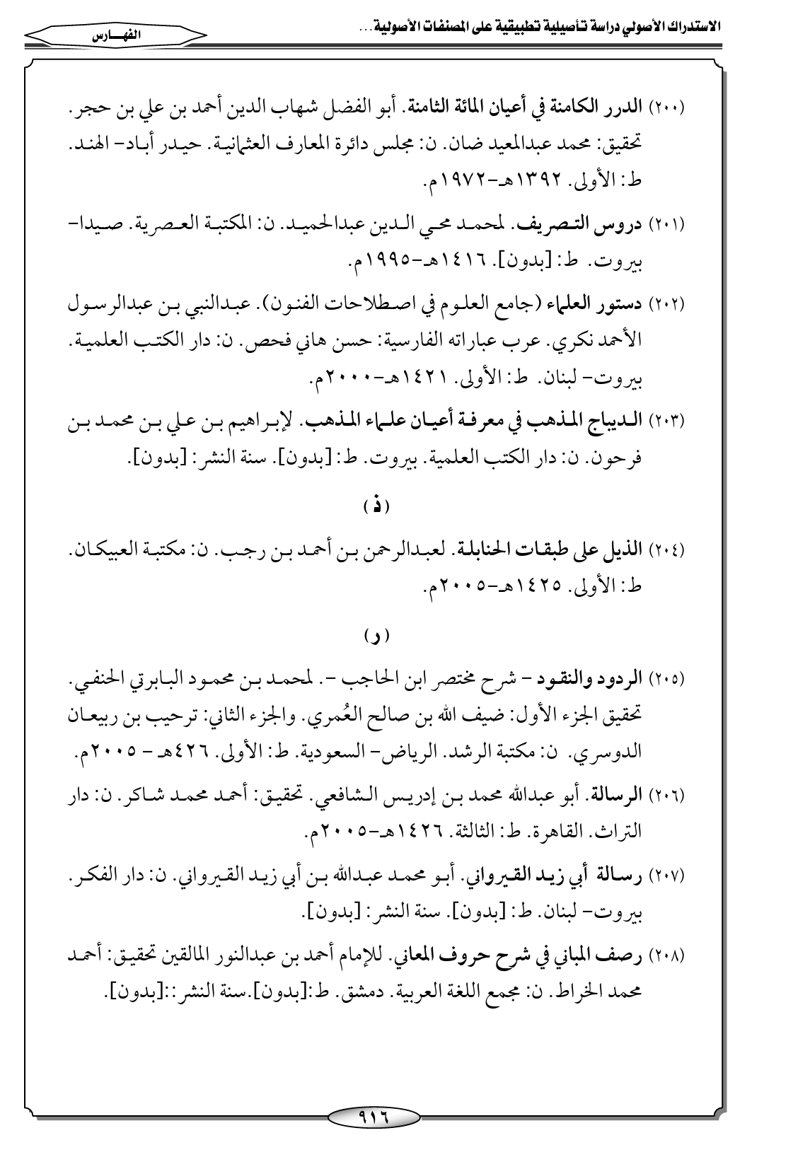 (٢٠٥) الردود والنقود - شرح مختصر ابن الحاجب -. لمحمد بن محمود البابرتي الحنفي. تحقيق الجزء الأول: ضيف الله بن صالح العُمري. والجزء الثاني: ترحيب بن ربيعان الدوسري. ن: مكتبة الرشد. الرياض- السعودية. ط: الأولى. ٤٢٦ هـ - ٢٠٠٥ م.