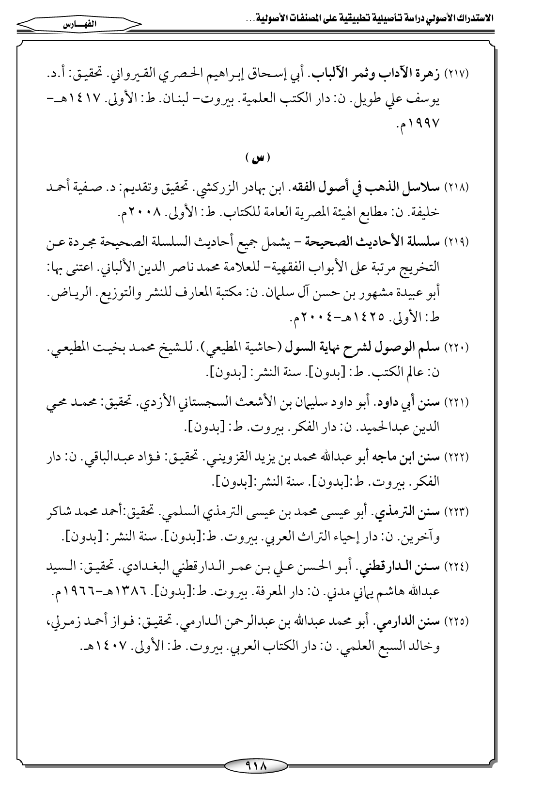 (٢١٨) سلاسل الذهب في أصول الفقه. ابن بهادر الزركشي. تحقيق وتقديم: د. صفية أحمد خليفة. ن: مطابع الهيئة المصرية العامة للكتاب. ط: الأولى. ٢٠٠٨ م.