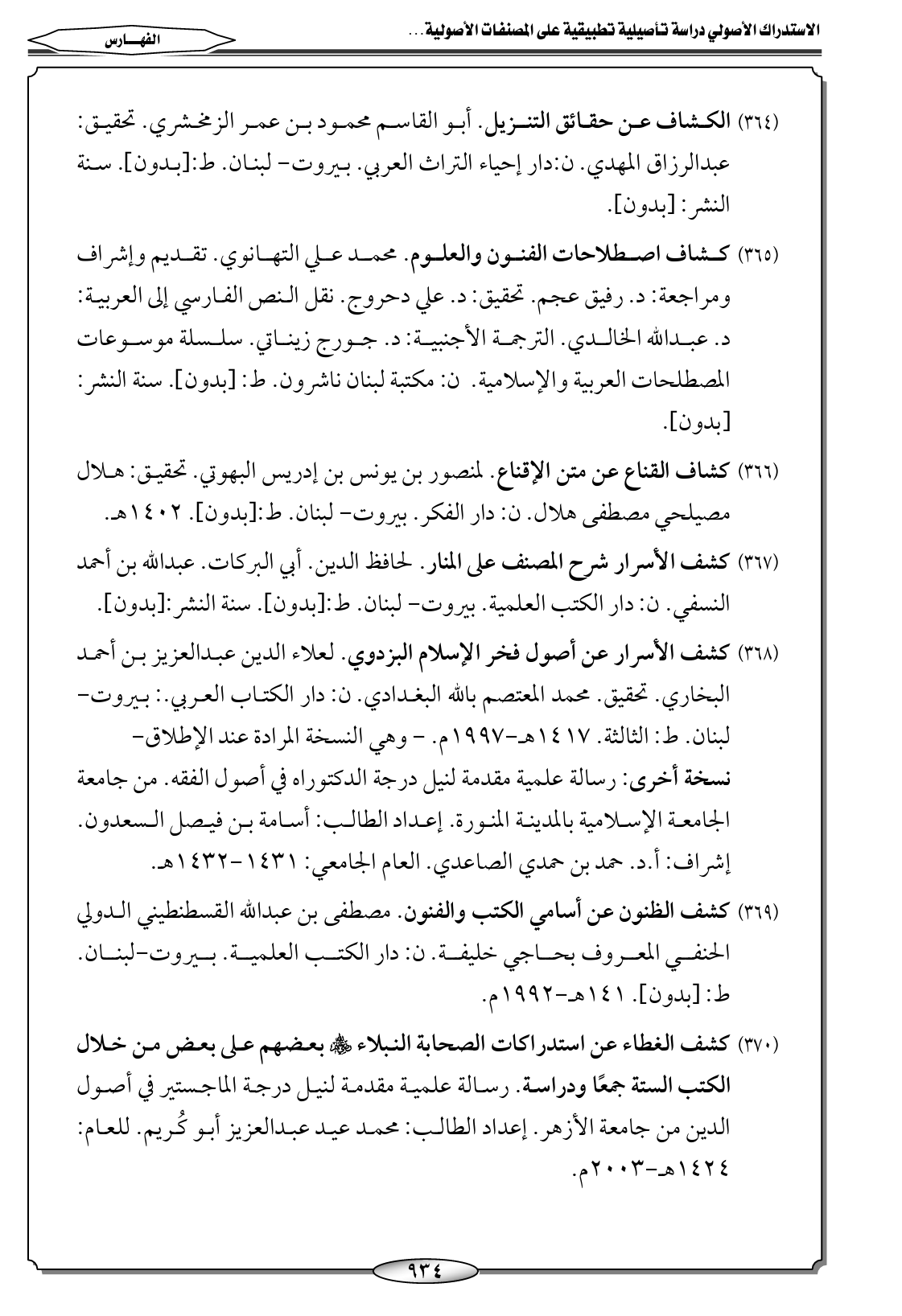(١٤٨) كشف الأسرار شرح المصنف على المنار. لحافظ الدين. أبي البركات. عبدالله بن أحمد النسفي. ن: دار الكتب العلمية. بيروت- لبنان. ط: [بدون]. سنة النشر: [بدون].