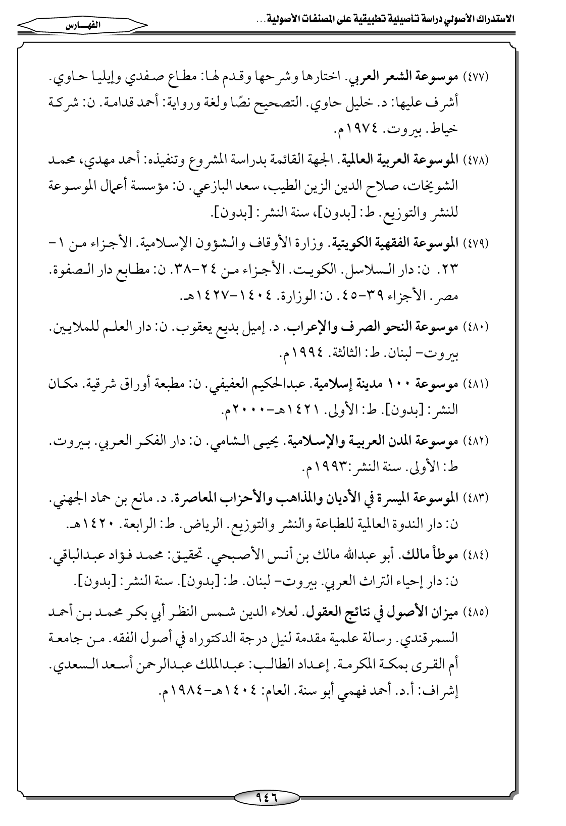 (١١) ميزان الأصول في نتائج العقول. لعلاء الدين شمس النظر أبي بكر محمد بن أحمد السمرقندي. رسالة علمية مقدمة لنيل درجة الدكتوراه في أصول الفقه. من جامعة أم القرى بمكة المكرمة. إعداد الطالب: عبدالملك عبدالرحمن أسعد السعدي. إشراف: أ. د. أحمد فهمي أبو سنة. العام: ١٤٠٤ هـ-١٩٨٤ م.