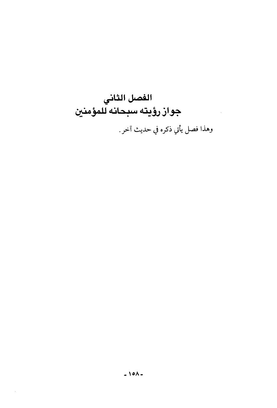 الفصل الثاني جواز رؤيته سُبْحَانَهُ للمؤمنين وهذا فصل يأتي ذكره فِي حديث آخر