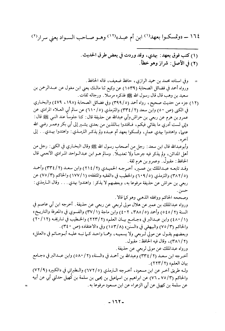 ١٦٤ - " وتمسكوا بعهد ابن أم عبد " وهو صاحب السواد يعني سرار.