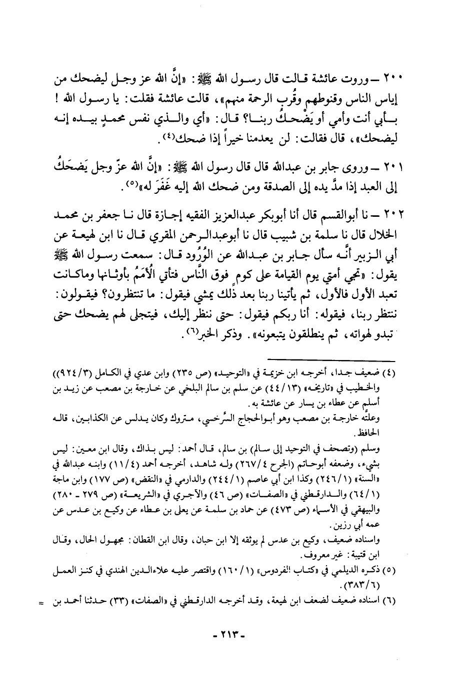 ٢٠١ - وروى جابر بن عبد الله قَالَ: قَالَ رسول الله، صَلَّى اللَّهُ عَلَيْهِ وَسَلَّمَ: " إن الله، عَزَّ وَجَلَّ، يضحك إلى العبد إذا مد يده إلى الصدقة، ومن ضحك الله إليه غفر له "
