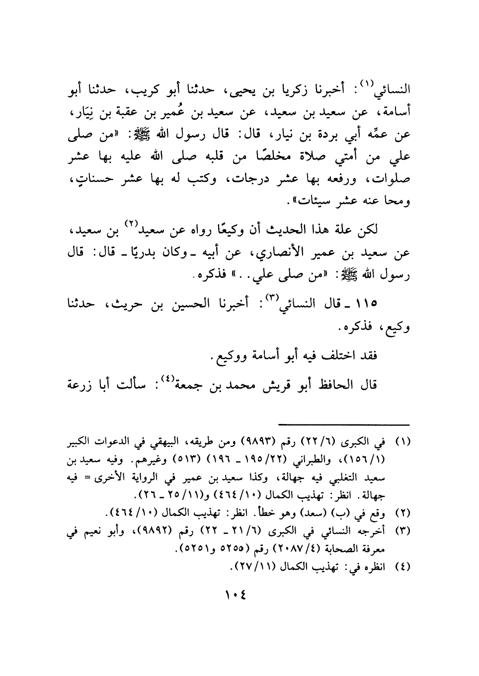 (¬١) في الكبري (٦/ ٢٢) رقم (٩٨٩٣) ومن طريقه، البيهقي في الدعوات الكبير (١/ ١٥٦)، والطبراني (٢٢/ ١٩٥ - ١٩٦) (٥١٣) وغيرهم. وفيه سعيد بن سعيد التغلبي فيه جهالة، وكذا سعيد بن عمير في الرواية الأخري = فيه جهالة. انظر: تهذيب الكمال (١٠/ ٤٦٤) و (١١/ ٢٥ - ٢٦).
