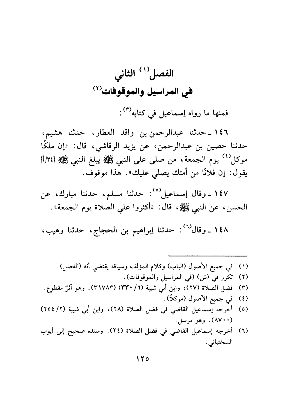 الفصل (¬١) الثاني في المراسيل والموقوفات (¬٢)