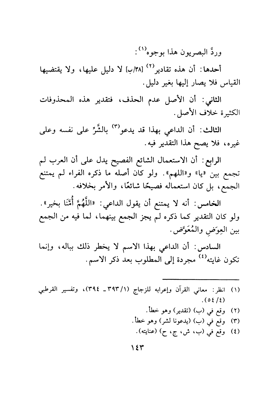 (¬١) انظر: معاني القرآن وإعرابه للزجاج (١/ ٣٩٣ - ٣٩٤)، وتفسير القرطبي (٤/ ٥٤).
