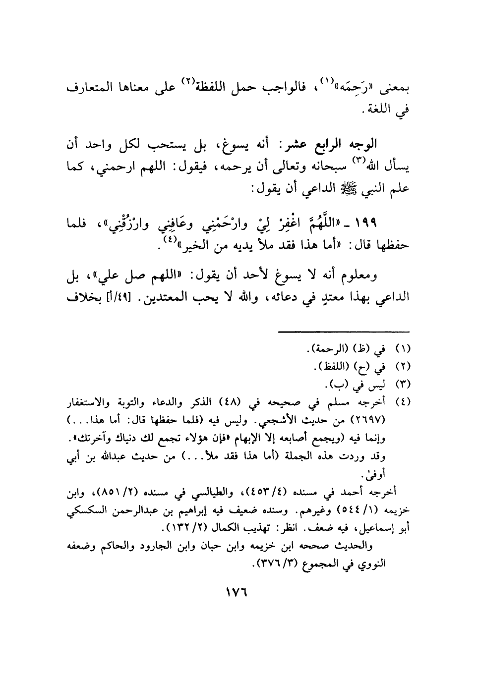 ١٩٩ - "اللهُمَّ اغْفِرْ لِيْ وارْحَمْنِي وعافِنِي وارْزقنِي"، فلما حفظها قال: "أما هذا فقد ملأ يديه من الخير" (¬٤).