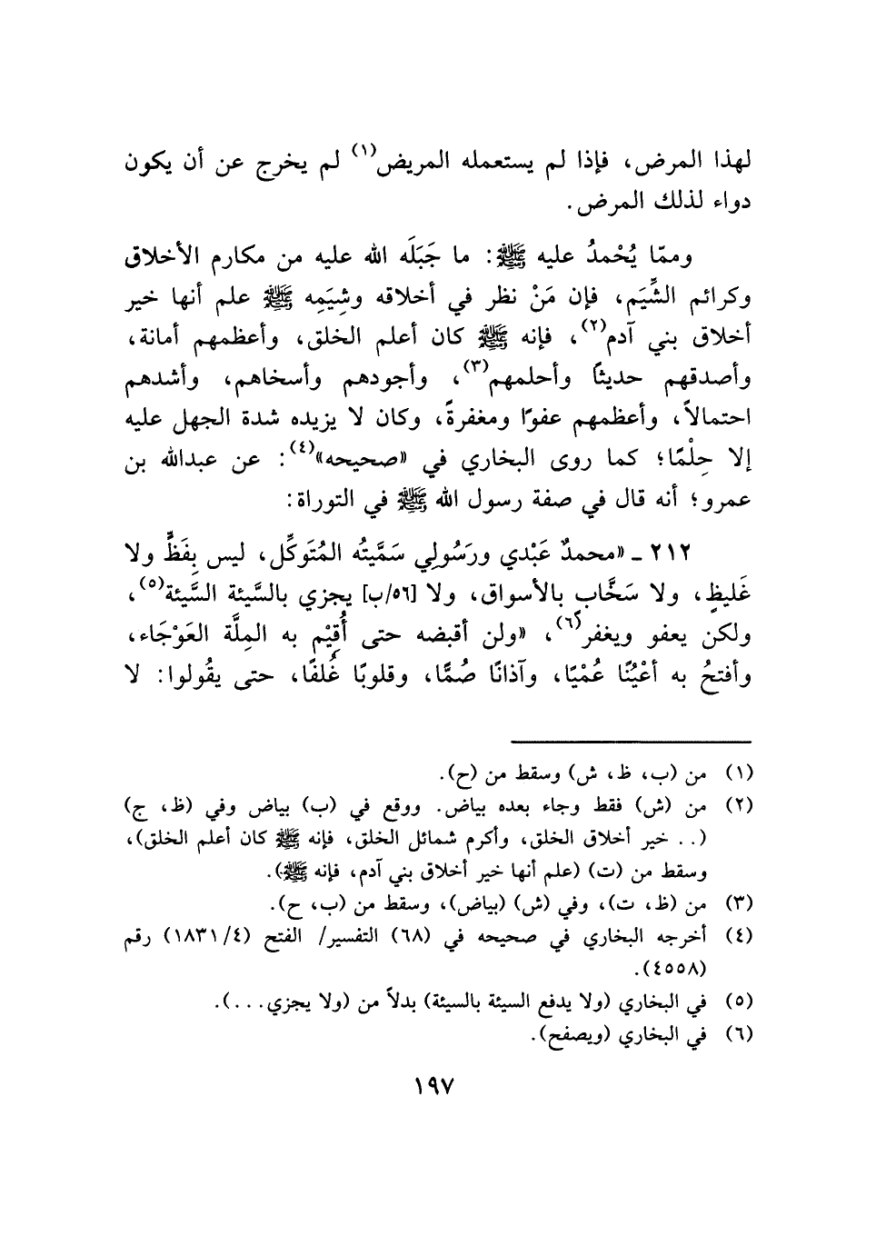 ٢١٢ - "محمدٌ عَبْدي ورَسُولي سَمَّيتُه المُتَوكِّل، ليس بفَظٍّ ولا غَليظٍ، ولا سَخَّابٍ بالأسواق، ولا يجزي بالسَّيئة السَّيئة (¬٥)، ولكن يعفو ويغفر (¬٦)، "ولن أقبضه حتى أُقِيْم به المِلَّة العَوْجَاء، وأفتحُ به أعْيُنًا عُمْيًا، وآذانًا صُمًّا، وقلوبًا غُلفًا، حتى يقُولوا: لا