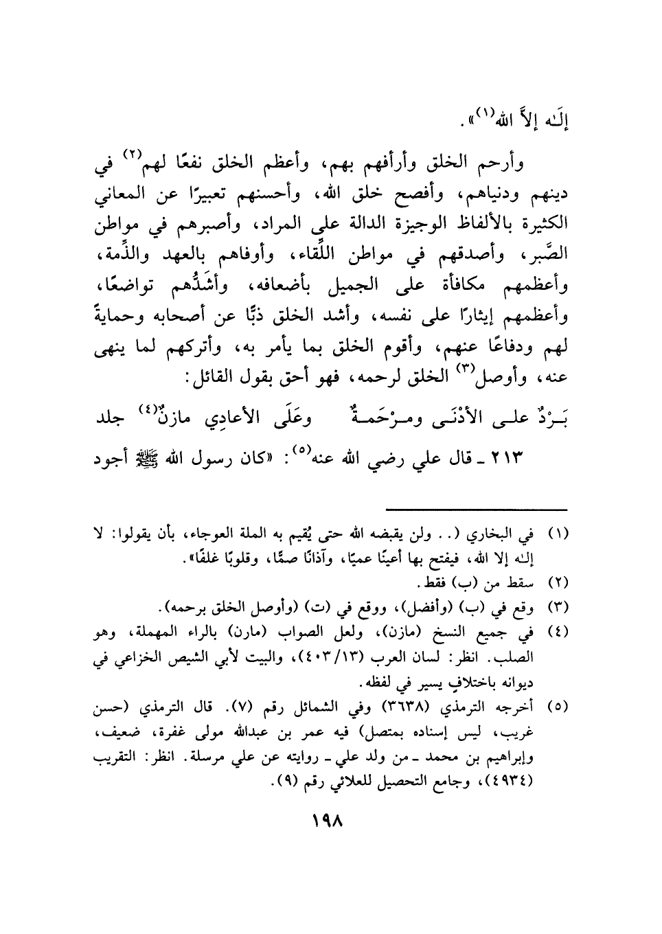 ٢١٣ - قال علي رضي الله عنه (¬٥): "كان رسول الله - صلى الله عليه وسلم - أجود