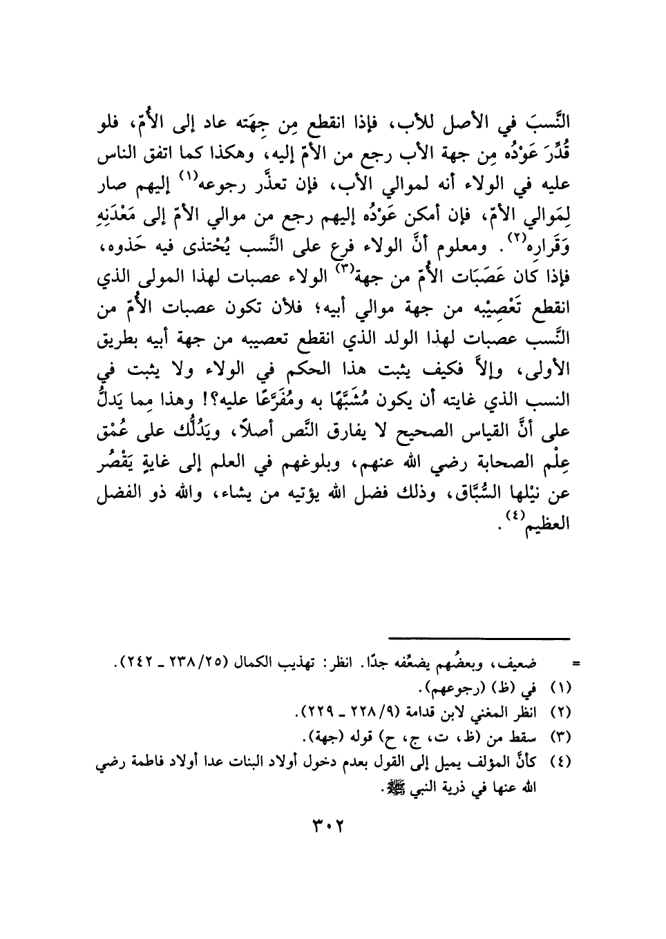(¬٤) كأنَّ المؤلف يميل إلى القول بعدم دخول أولاد البنات عدا أولاد فاطمة رضي الله عنها في ذرية النبي - صلى الله عليه وسلم -.