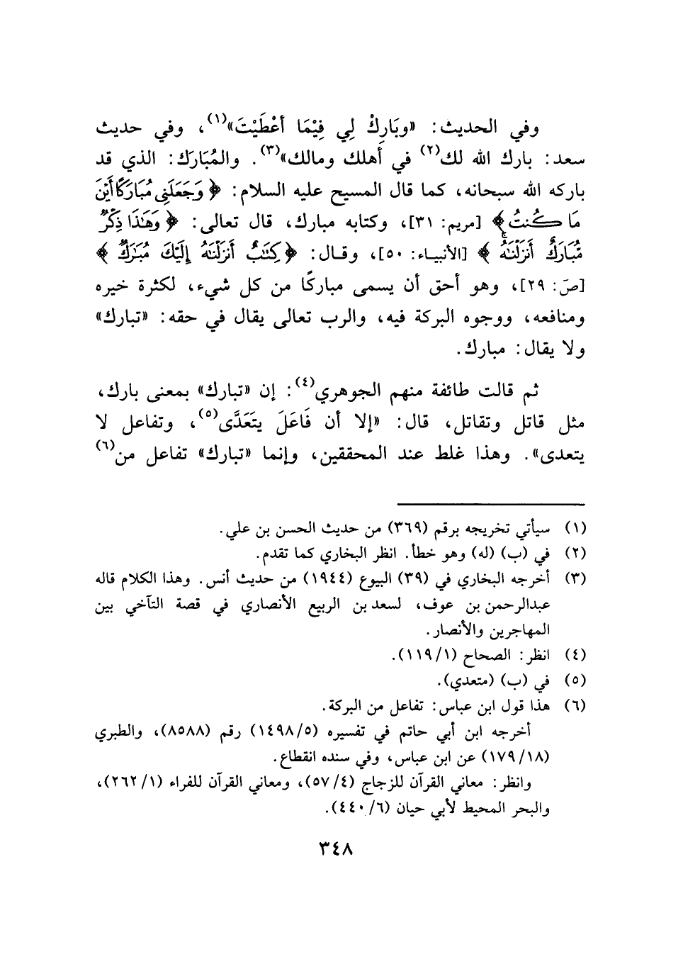 (¬٦) هذا قول ابن عباس: تفاعل من البركة.