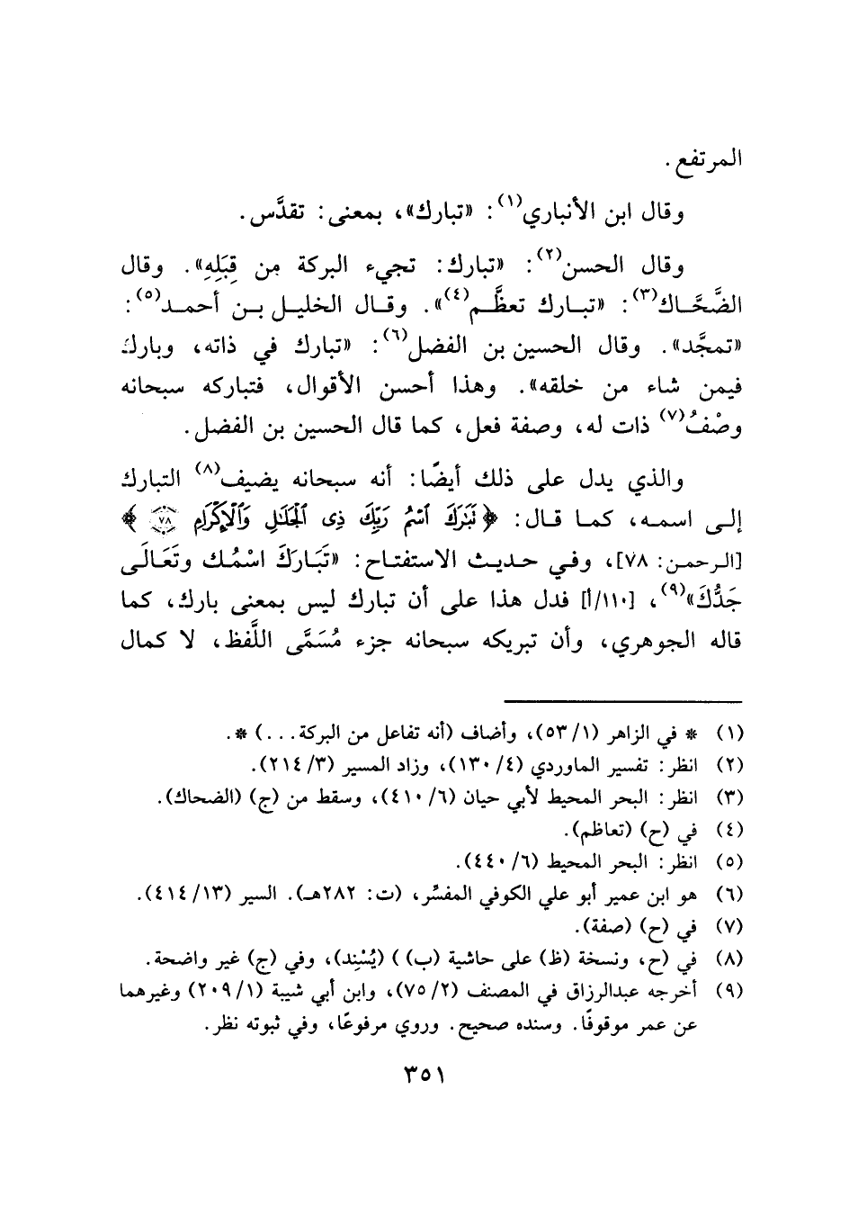 (¬١) * في الزاهر (١/ ٥٣)، وأضاف (أنه تفاعل من البركة ... ) *.