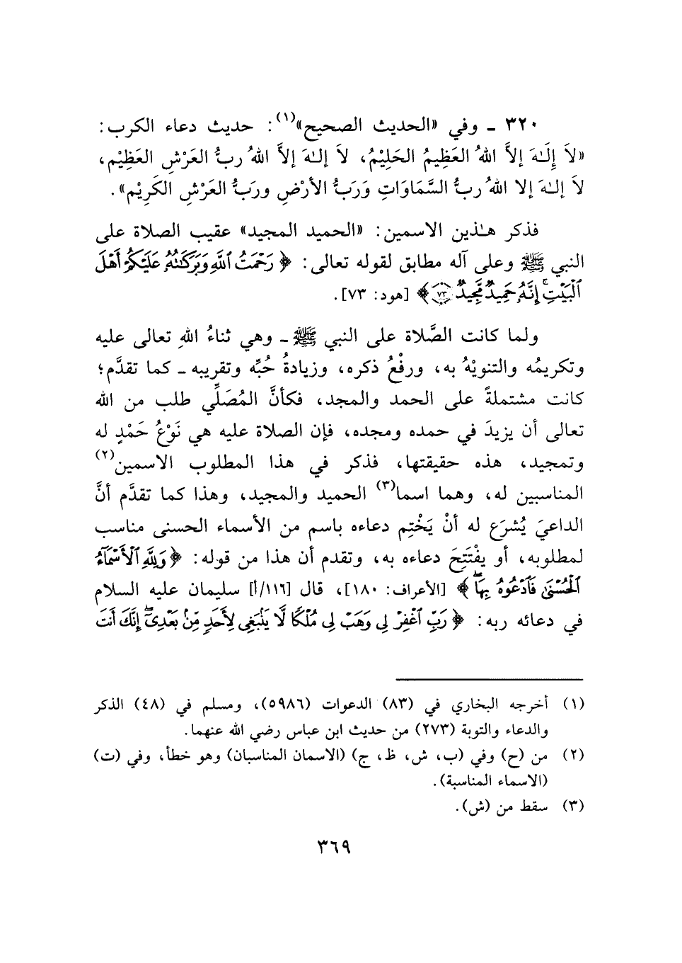 ٣٢٠ - وفي "الحديث الصحيح" (¬١): حديث دعاء الكرب: "لَا إِلَهَ إلَّا اللهُ العَظِيمُ الحَلِيْمُ، لَا إلهَ إلَّا اللهُ رب العَرْشِ العَظِيْم، لَا إلهَ إلا اللهُ ربُّ السَّمَاوَاتِ وَرَبُّ الأرْضِ ورَبُّ العَرْشِ الكَرِيْم".