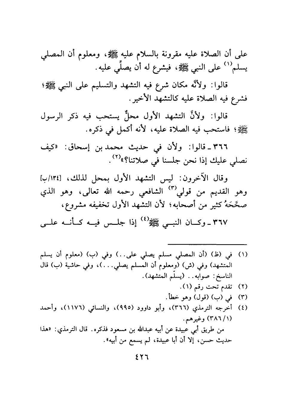 ٣٦٦ - قالوا: ولأن في حديث محمد بن إسحاق: "كيف نصلي عليك إذا نحن جلسنا في صلاتنا؟ " (¬٢).