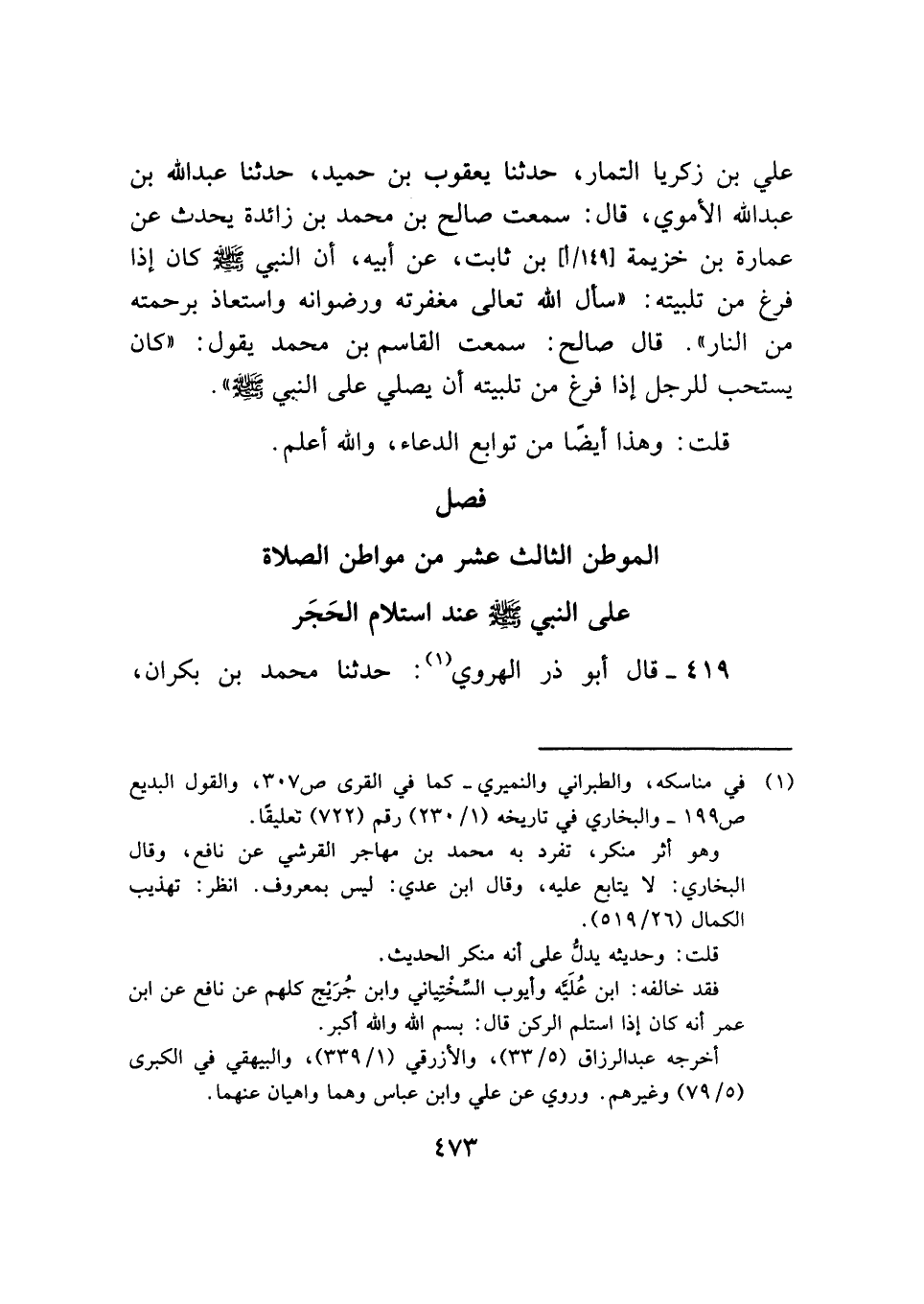 فصل الموطن الثالث عشر من مواطن الصلاة على النبي - صلى الله عليه وسلم - عند استلام الحَجَر