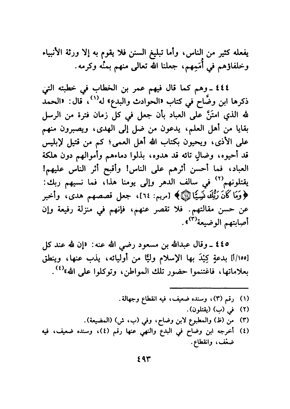 (¬٤) أخرجه ابن وضاح في البدع والنهي عنها رقم (٤)، وسنده ضعيف، فيه ضعْف، وانقطاع.