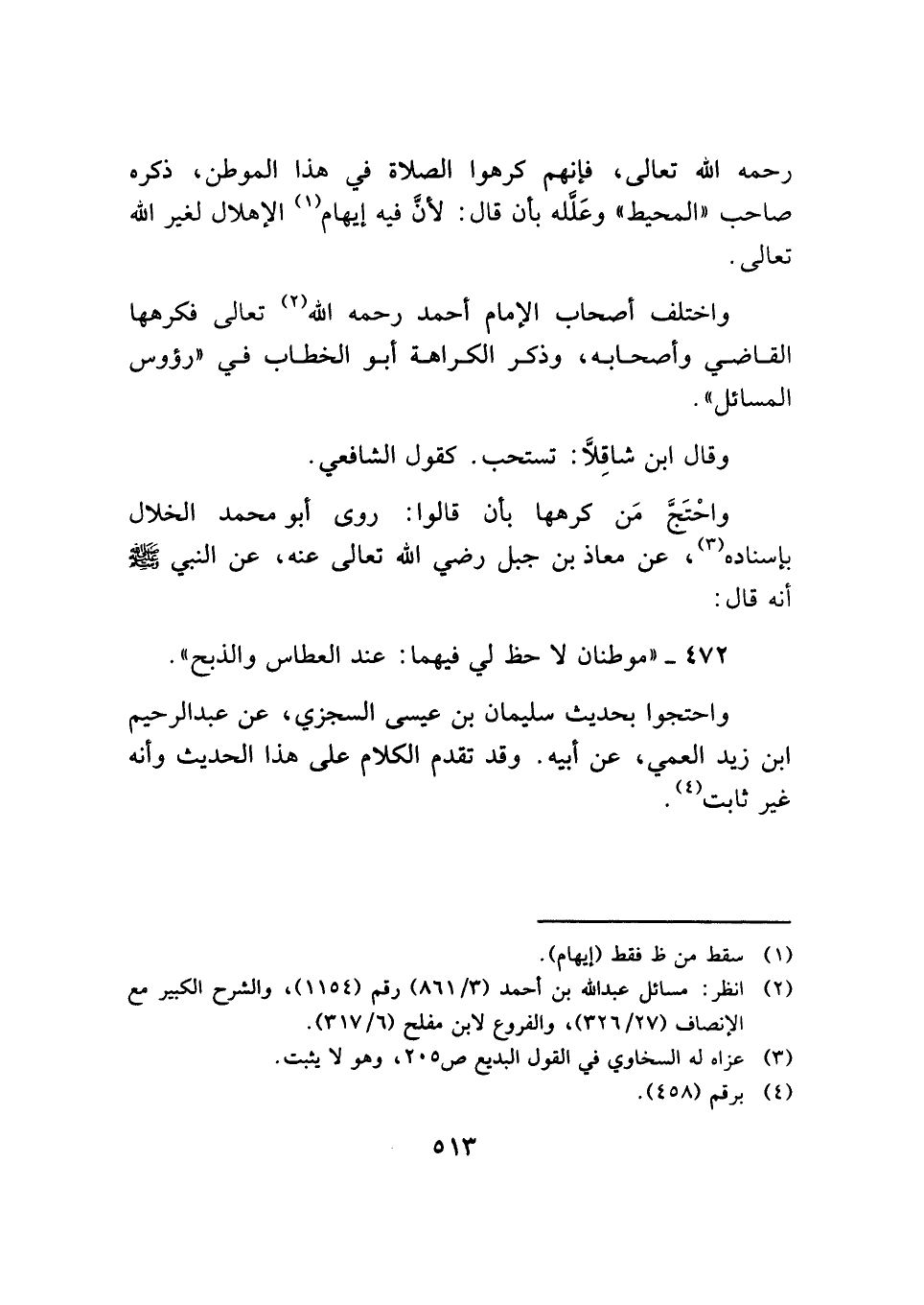 ٤٧٢ - "موطنان لا حظ لي فيهما: عند العطاس والذبح".