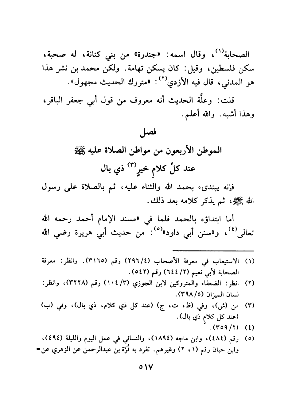 فصل الموطن الأربعون من مواطن الصلاة عليه - صلى الله عليه وسلم - عند كلِّ كلامِ خيرٍ (¬٣) ذي بال