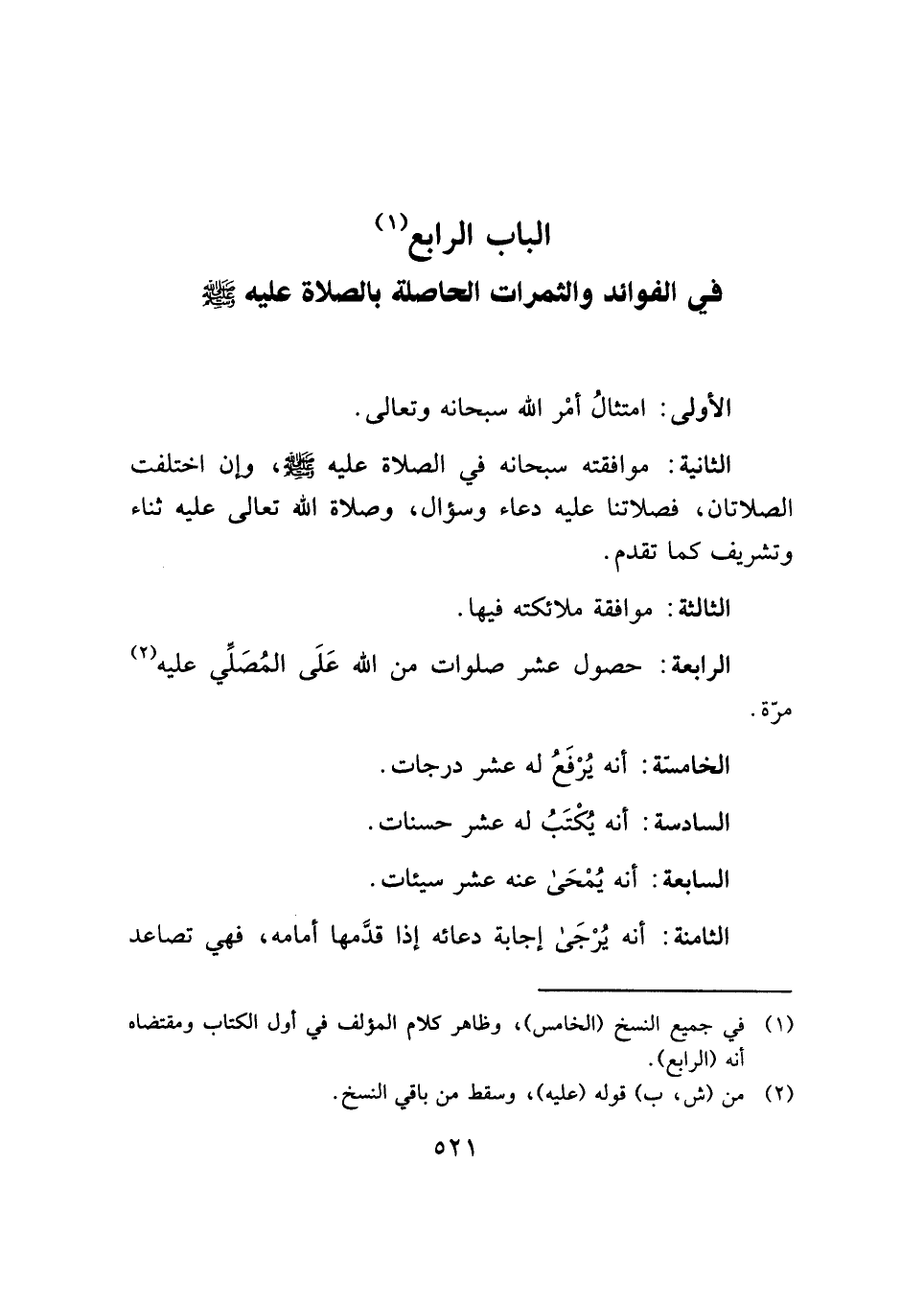 الباب الرابع (¬١) في الفوائد والثمرات الحاصلة بالصلاة عليه - صلى الله عليه وسلم -
