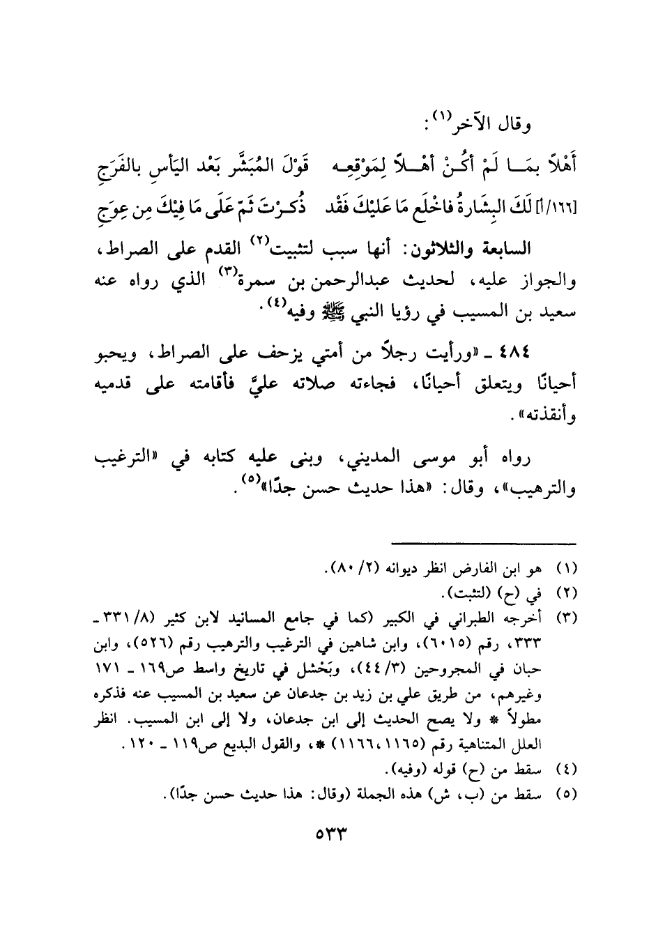 ٤٨٤ - "ورأيت رجلًا من أمتي يزحف على الصراط، ويحبو أحيانًا ويتعلق أحيانًا، فجاءته صلاته عليَّ فأقامته على قدميه وأنقذته".