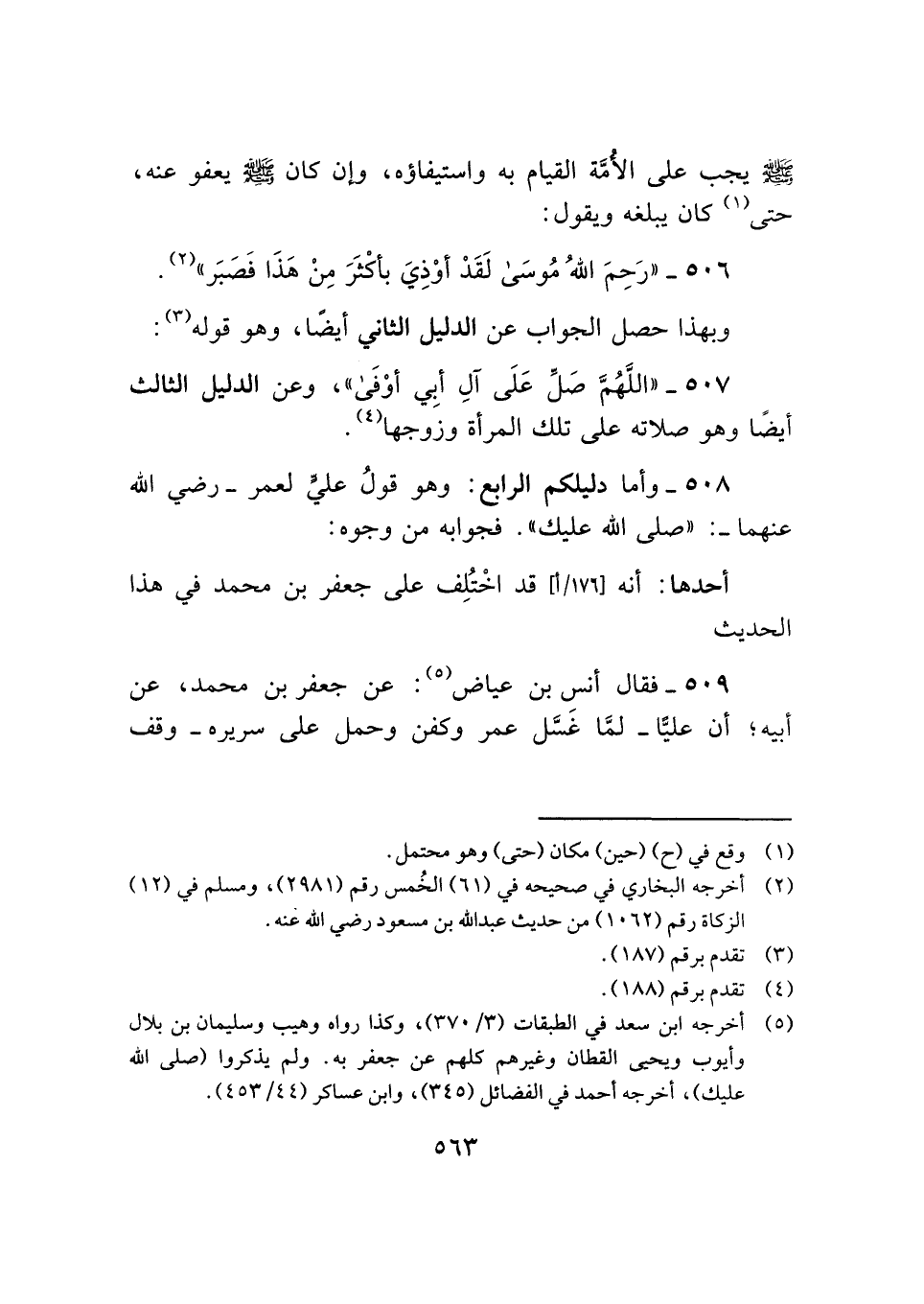 ٥٠٨ - وأما دليلكم الرابع: وهو قولُ عليٍّ لعمر - رضي الله عنهما-: "صلى الله عليك". فجوابه من وجوه: