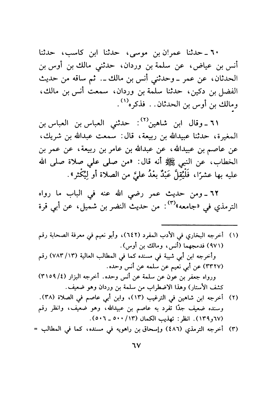 (¬٣) أخرجه الترمذي (٤٨٦) وإسحاق بن راهويه في مسنده، كما في المطالب=