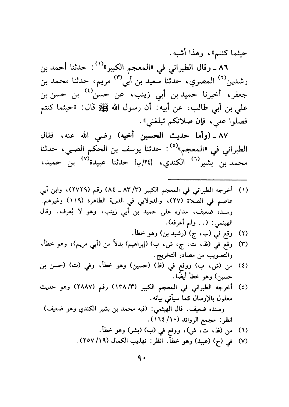 (¬١) أخرجه الطبراني في المعجم الكبير (٣/ ٨٣ - ٨٤) رقم (٢٧٢٩)، وابن أبي عاصم في الصلاة (٢٧)، والدولابي في الذرية الطاهرة (١١٩) وغيرهم. وسنده ضعيف، مداره علي حميد بن أبي زينب، وهو لا يُعرف. وقال الهيثمي: ( .. ولم أعرفه).