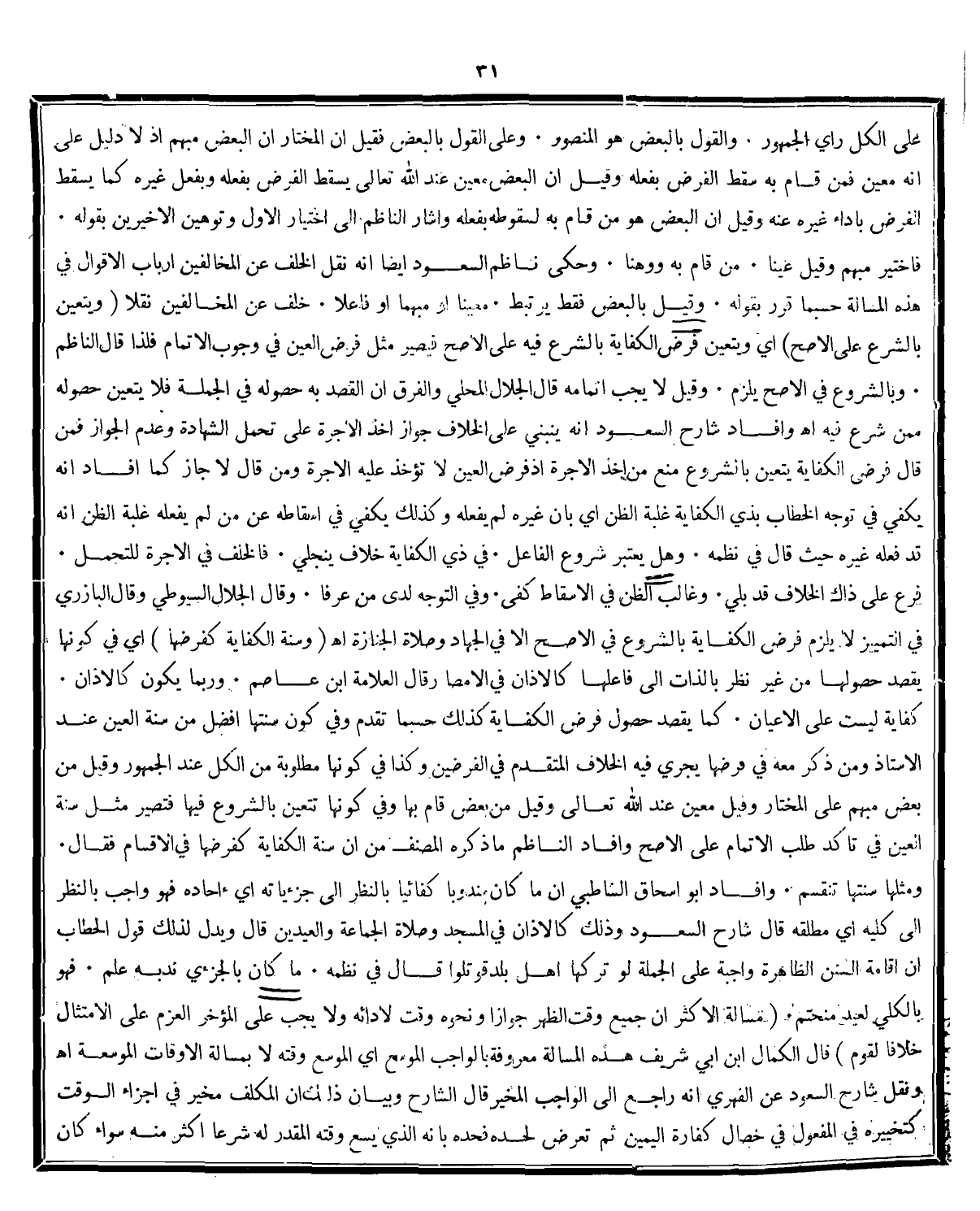وربما يكون كالاذان ... كفاية ليست على الاعيان