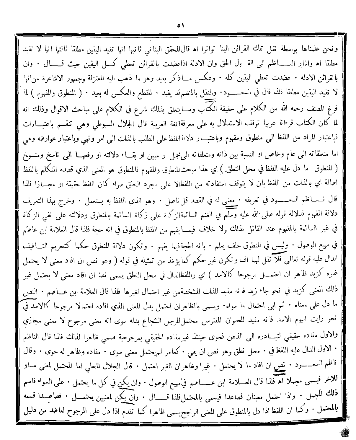 وليس فى المنطوق خلف يعلم ... بانه الحجة فيمايفهم