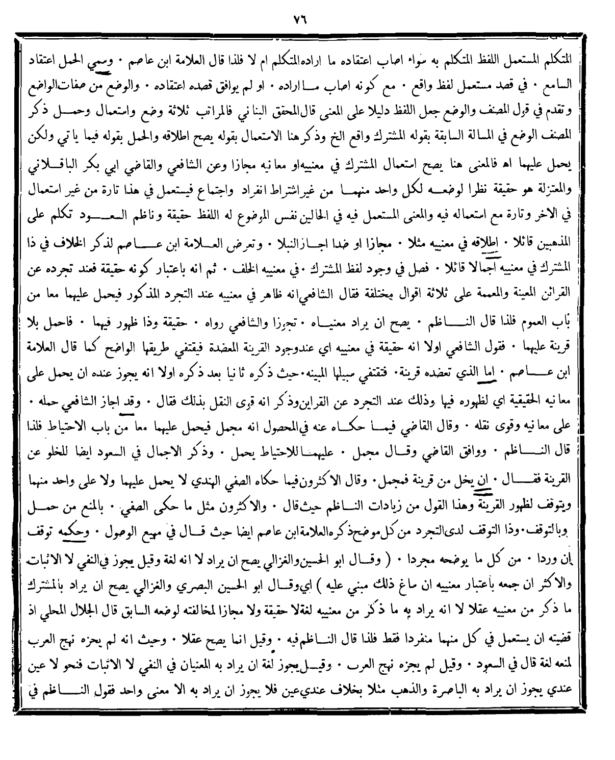 وتعرض العلامة ابن عاصم لذكر الخلاف فى ذا المشترك فى معنييه اجمالا قائلا فصل فى وجود المشترك ... فى معنييه الخلف