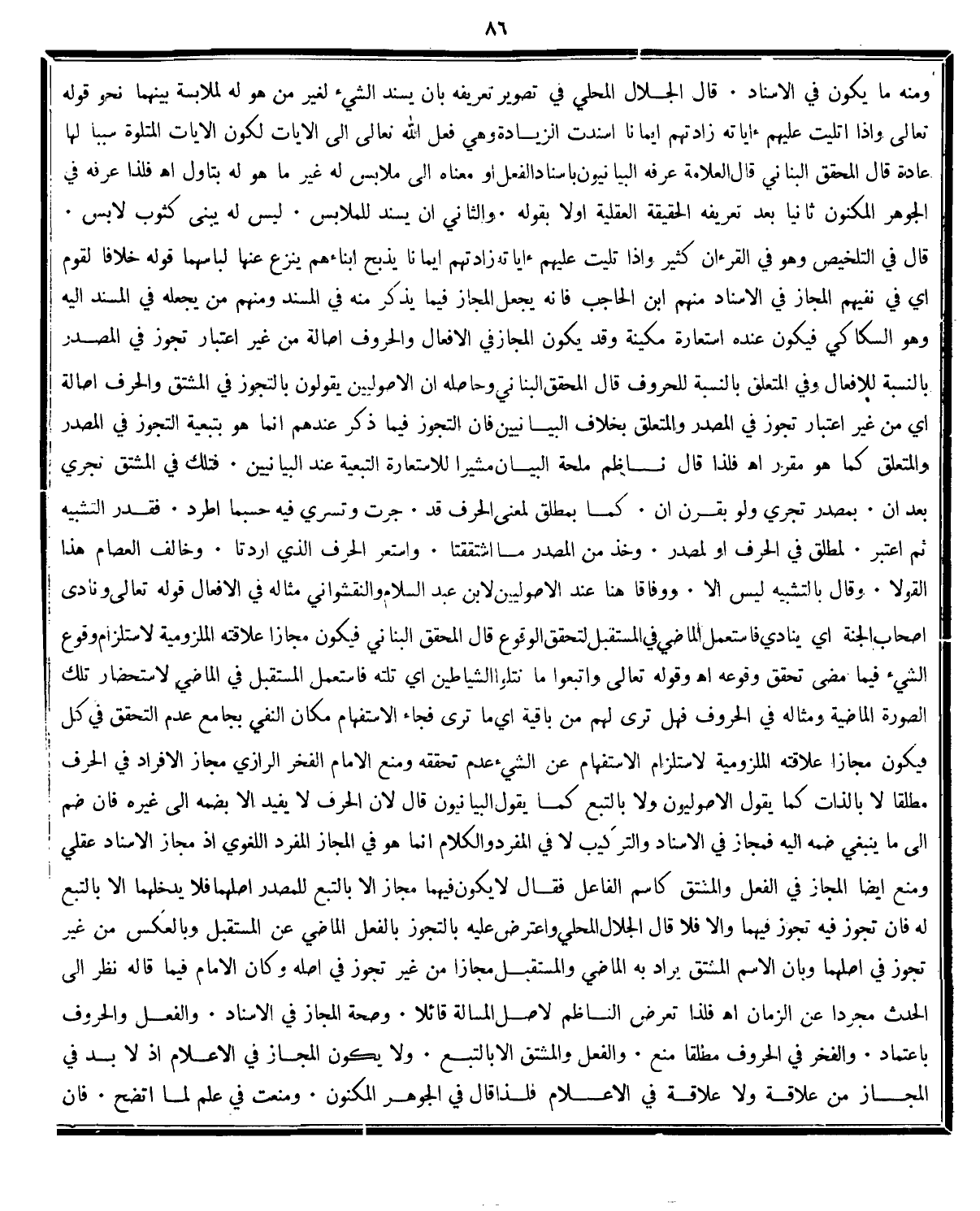 ولايكون المجاز فى الاعلام اذ لابد فى المجاز من علاقة ولاعلاقة فى الاعلام فلذا قال فى الجوهر المكنون:. وَمُنِعَتْ في عَلَمٍ لِما اتّضَحْ