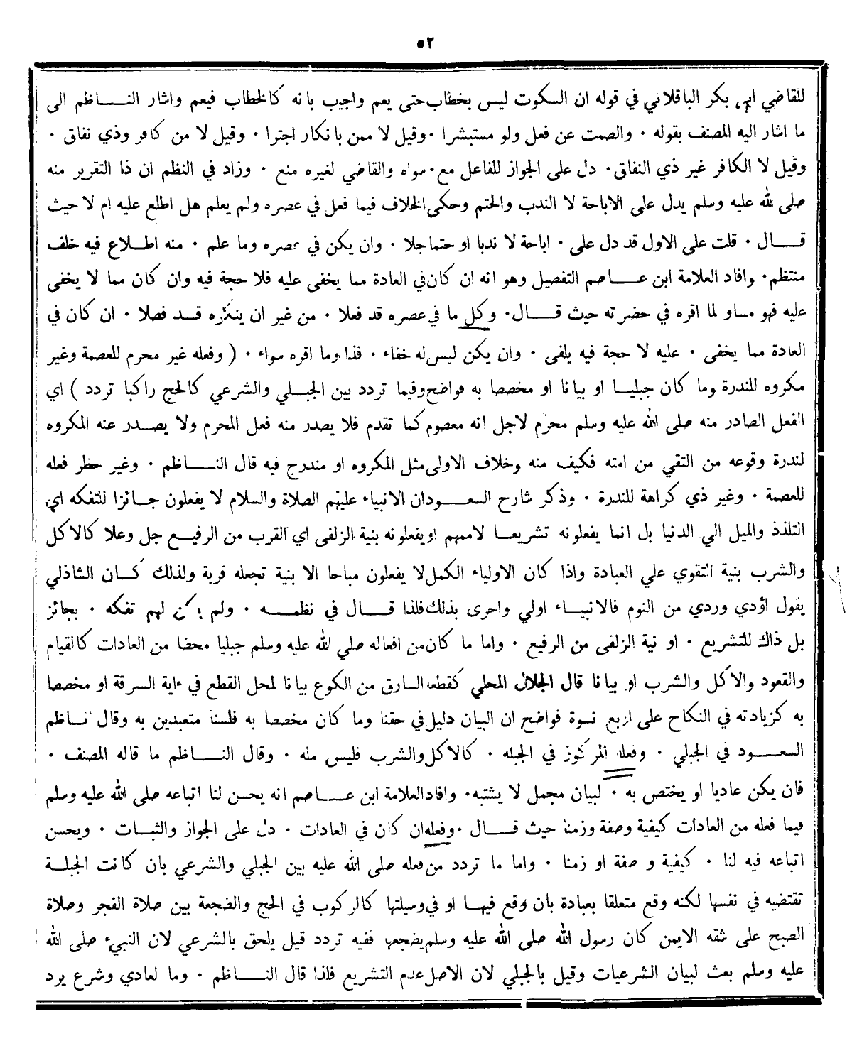 وغير حظر فعله للعصمة ... . وغير ذي كراهة للندرة