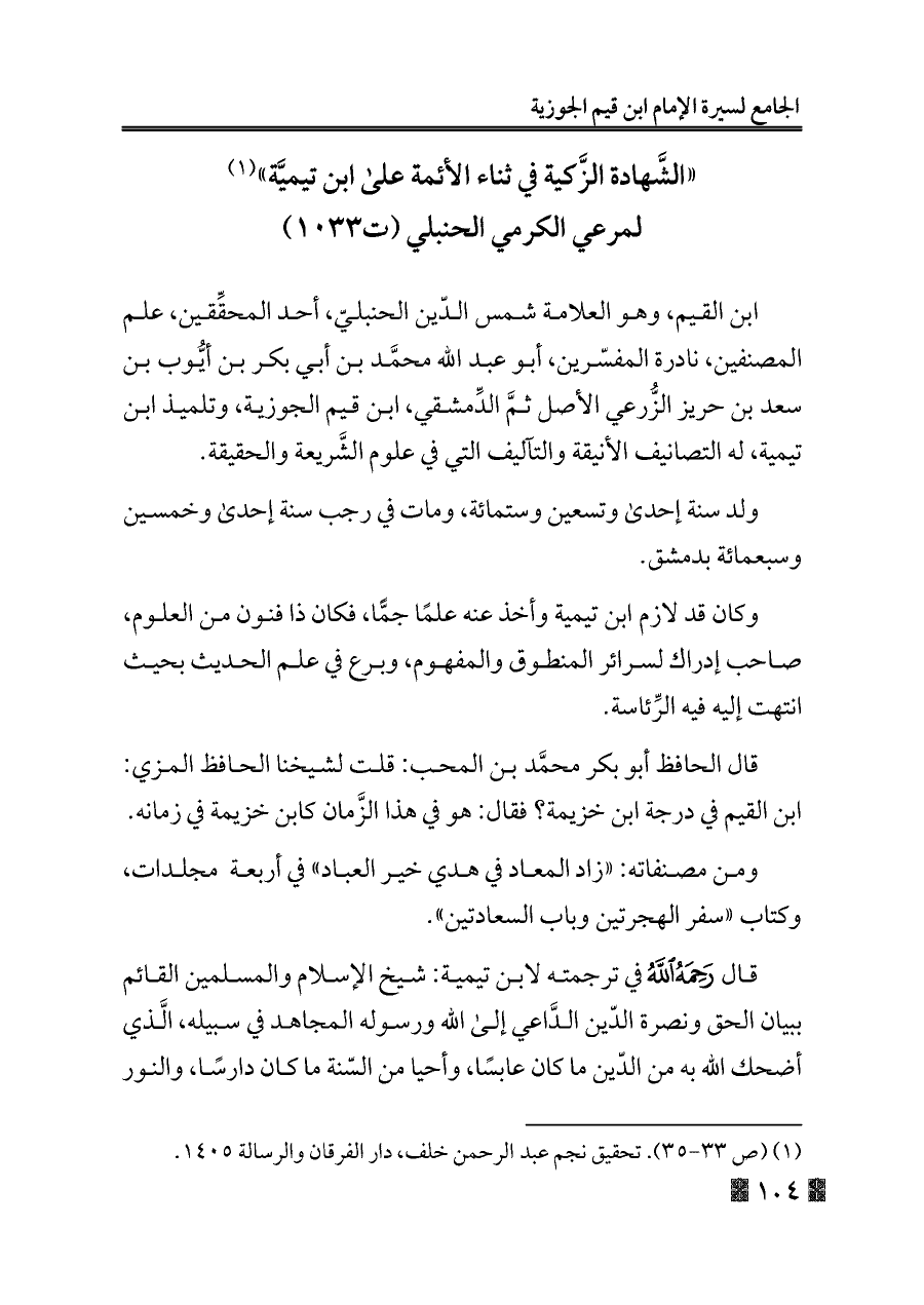 (¬١) (ص ٣٣ - ٣٥). تحقيق نجم عبد الرحمن خلف، دار الفرقان والرسالة ١٤٠٥.