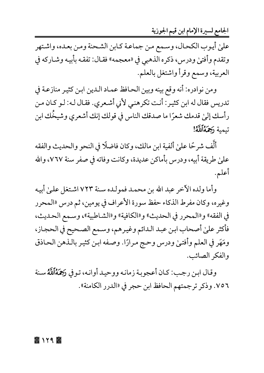 كتاب الجامع لسيرة الإمام ابن قيم الجوزية خلال ستة قرون