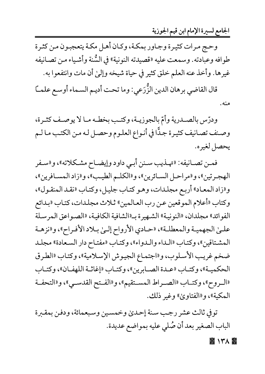 كتاب الجامع لسيرة الإمام ابن قيم الجوزية خلال ستة قرون