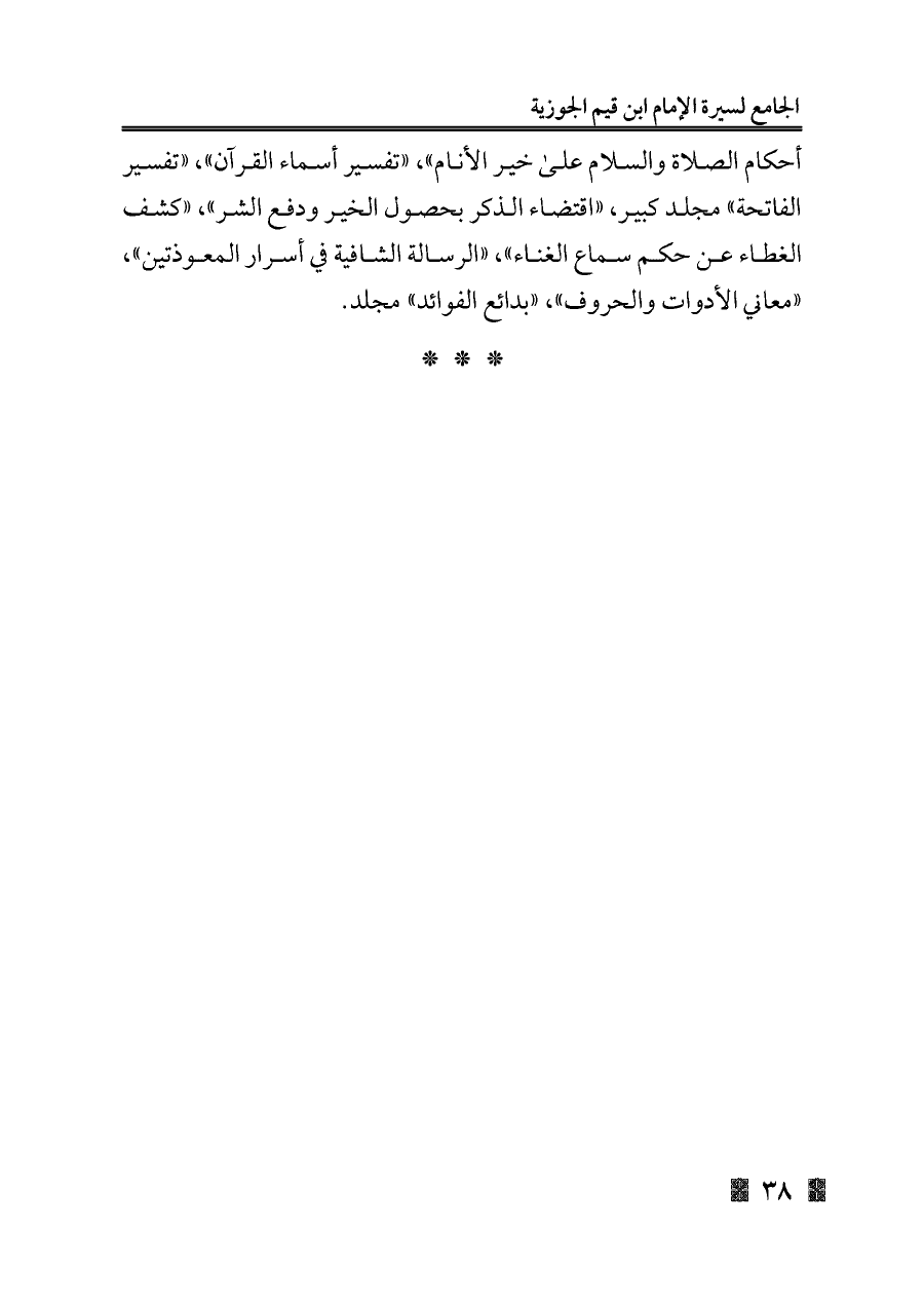 أحكام الصلاة والسلام على خير الأنام»، «تفسير أسماء القرآن»، «تفسير الفاتحة» مجلد كبير، «اقتضاء الذكر بحصول الخير ودفع الشر»، «كشف الغطاء عن حكم سماع الغناء»، «الرسالة الشافية في أسرار المعوذتين»، «معاني الأدوات والحروف»، «بدائع الفوائد» مجلد.