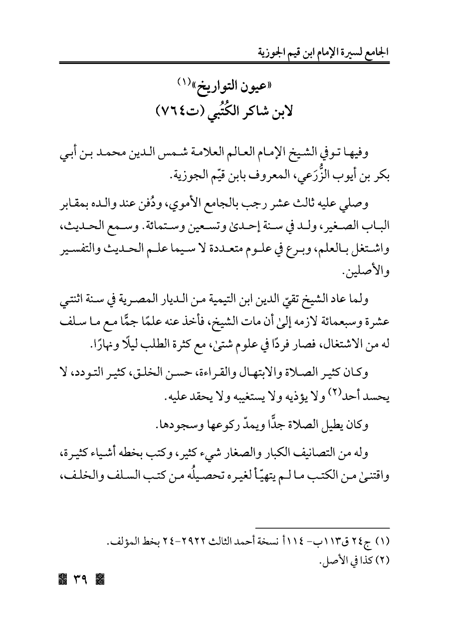 كتاب الجامع لسيرة الإمام ابن قيم الجوزية خلال ستة قرون