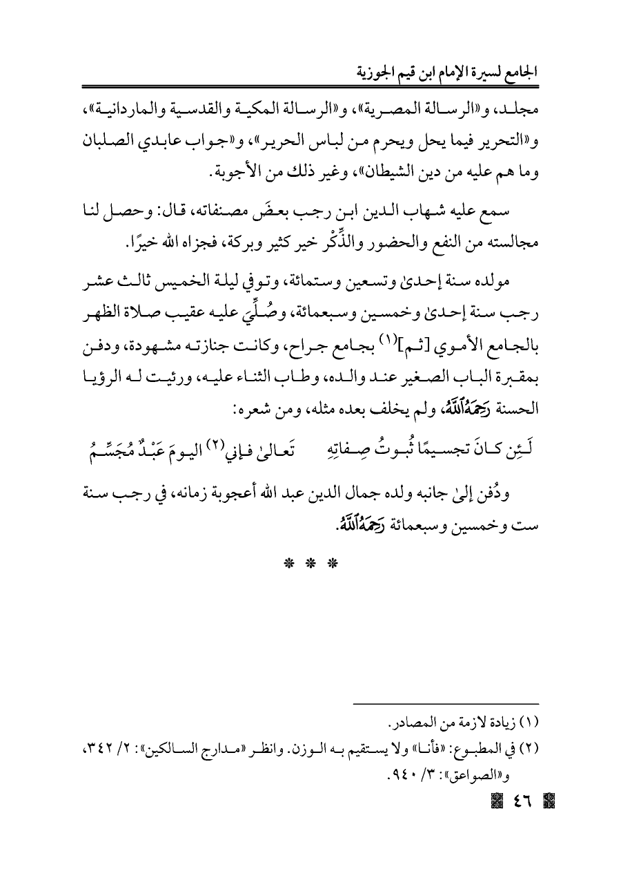 كتاب الجامع لسيرة الإمام ابن قيم الجوزية خلال ستة قرون