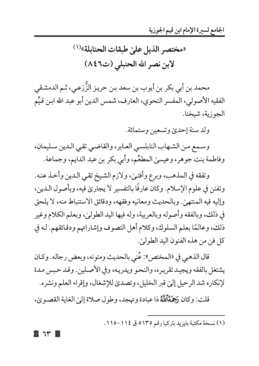 «مختصر الذيل على طبقات الحنابلة» (¬١)