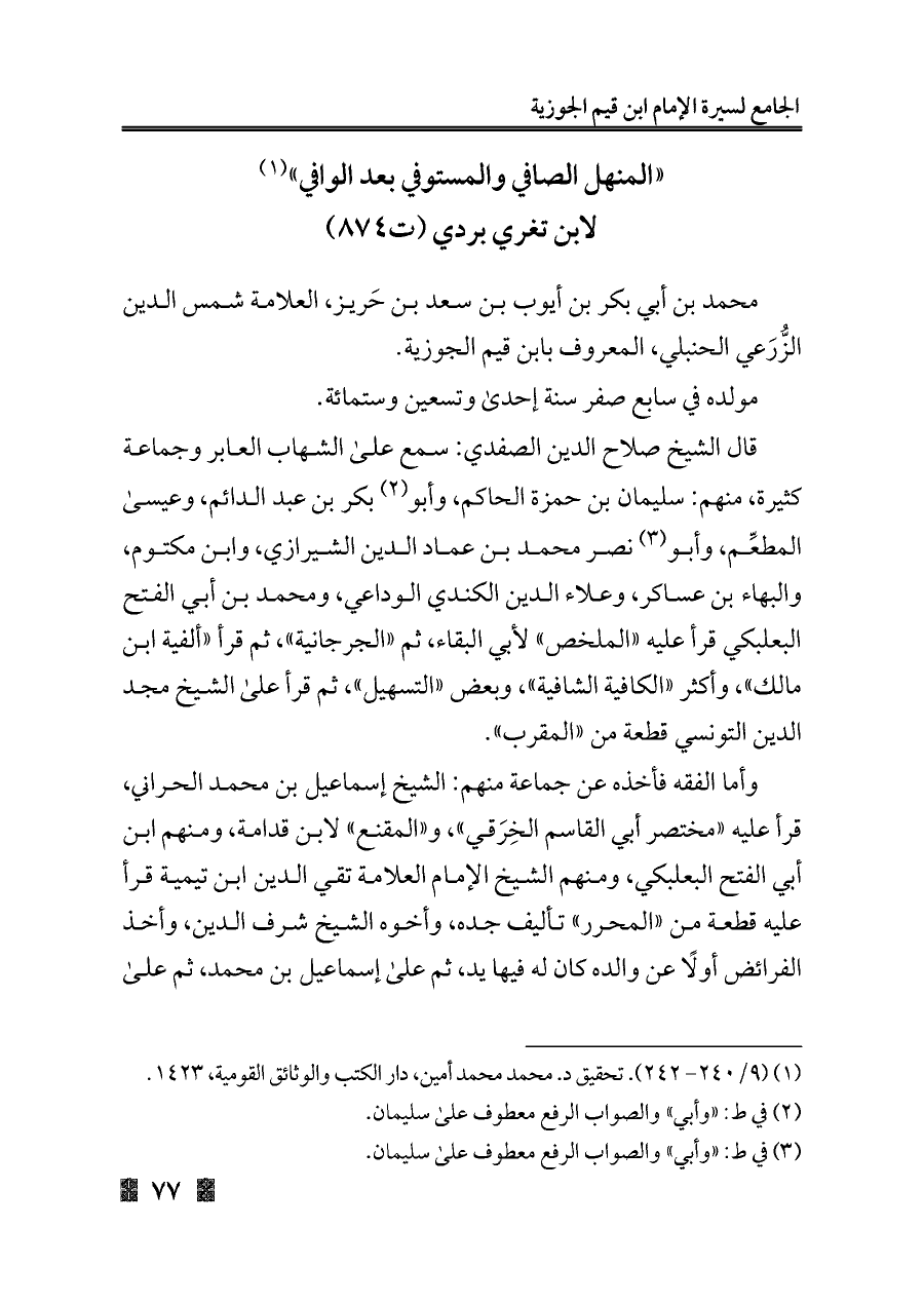 (¬١) (٩/ ٢٤٠ - ٢٤٢). تحقيق د. محمد محمد أمين، دار الكتب والوثائق القومية، ١٤٢٣.