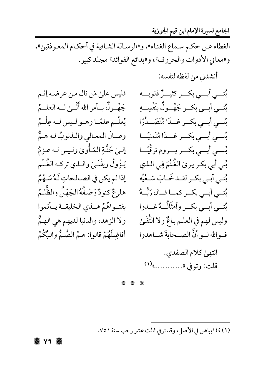 بُني أبي بكر وأمثَالُهُ غدوا ... بفتواهُمُ هذي الخليقة يأتموا