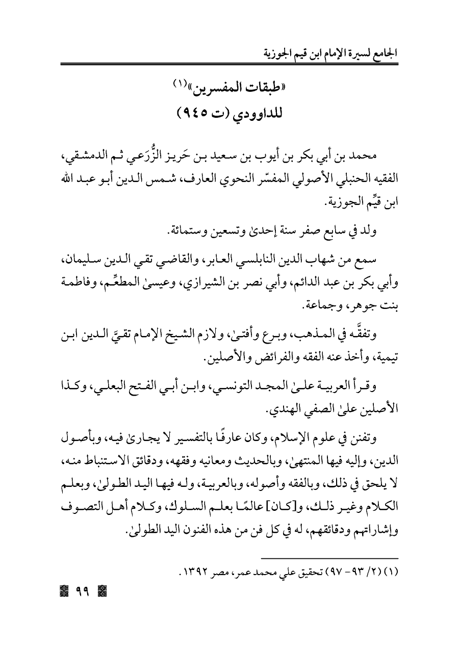(¬١) (٢/ ٩٣ - ٩٧) تحقيق علي محمد عمر، مصر ١٣٩٢.